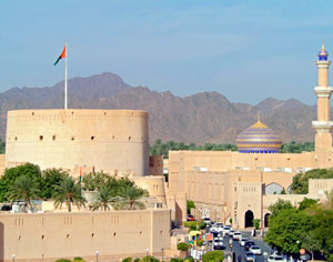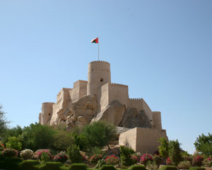 Nizwa Fort is one of the oldest forts in Oman and lies in A'Dakhiliyah Governorate. It has a unique large round shape. Its height reaches 24 metres, with an outer diameter of 43 metres and an inner diameter of 36 metres. This fort has seven wells and multiple openings for stationing the fighters defending the fort. Nizwa Fort was built by Imam Sultan Bin Saif Al Y`aribi in the middle of the seventeenth century. It was this imam who expelled the Portuguese from Oman. The fort, which took 12 years to build, is linked with a castle by means of intricate corridors. Near the fort and castle is the traditional Nizwa market famous for its artefacts.